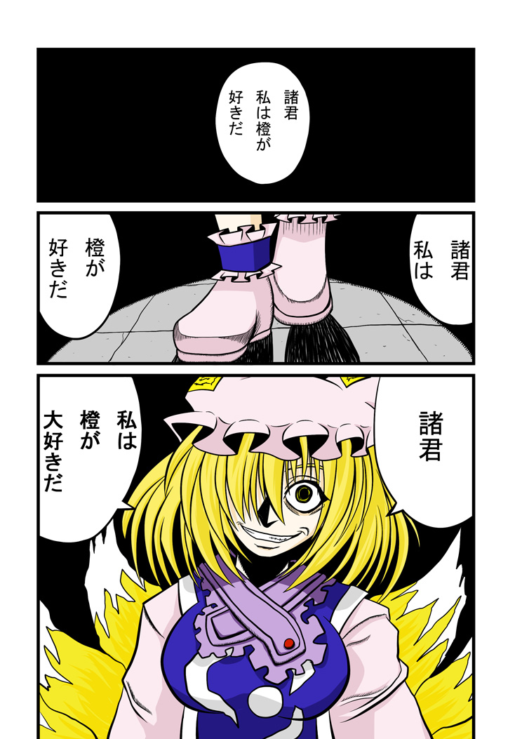 (自己確認の意味も込めて・・・) 「橙がんばる!2」 橙が修行をがんばります! 霊夢に喧嘩売ったりします。 途中からゆかりんに体を弄ばれます。 「橙がんばる!EX」 橙がんばる!とお話は同じで、某ピューと吹く!ギャグマンガのパロディ本 「橙がんばる!Re」 橙がんばる!の自己満足手直し本 再発行とも言う。 全ページ描き直し・・・予定 「橙がんばる!外伝集」 ・「藍がんばる!?」 藍の幼少時代?のお話。 藍のトラウマ ・「BLACK橙」 橙が藍に怒り心頭!? 藍に大怪我?を負わせ逃走・・・ そして、自己嫌悪に陥る橙に、てゐの魔の手が・・・ 夢を見続ける事が、オレのファンタジー ・「紫がんばる?」 八雲一家、秋葉原ツアー?(内容変更の可能性有り) 内容にちょっと迷っています、ネームを描いてみるまでは、どうなるか解りません。 ~以下・発行日未決定本~ 「橙がんばる!I・T」 サプライズ本(予定)(構想有り) 「橙がんばる!R」 えろほん(考え無し) 要望が有れば、頑張ります! 無ければ、発行は未定です。 「東方八雲伝~黎明編~」 オリキャラが出ます・・・(構想有り) 癖が強いので、好みが分かれそうな話です。 「東方八雲伝~紅蓮編~」 八雲一家の危機に橙が立ち上がりますッ!!?(構想有り) 熱血ギャグバトル漫画になる予定 ~東方シリーズ一周企画?~ 東方地霊殿本 「古明地さとりの幻想郷放浪記~いい旅夢気分~」 (2010年発行予定) 東方妖々夢本 「白玉楼の食卓」 (2010年発行予定) ~その他~ 「橙フィギュア化計画」見切り発車しました。 とりあえず、改造フィギュアで橙を作ろうとしています。 早ければ夏コミで私のスペースに居るカモ・・・ (失敗しなければ・・・) 色々とオマケグッズを製作しようと検討しています。 お値段を見て、目玉がよく飛び出します・・・