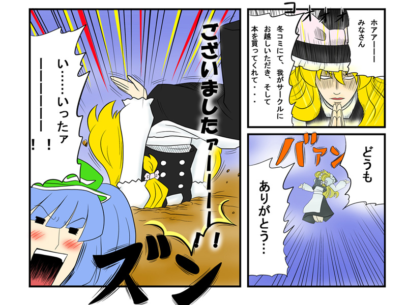 あと一日あるのですが、私の冬コミは終わりました・・・ 燃え尽きました・・・ 来てくれた皆様のおかげで、同人活動を始めて一番多く本が売れました!? 色々とあった一日・・・いや冬コミ当選からの、激動の2ヶ月でしたが 良い結果が出せたと思います。 もちろん至らない部分も沢山思い知りましたが、 そういう事は、今は置いといて・・・ ありがとうございます。 これからも精進して、より良い本を作れるようにしたいと思います。 短いですが、今日はココまでの報告とさせて頂きます。 後日、また何か色々と報告しようと思います(たぶん) では、あらためて ありがとうございました。