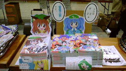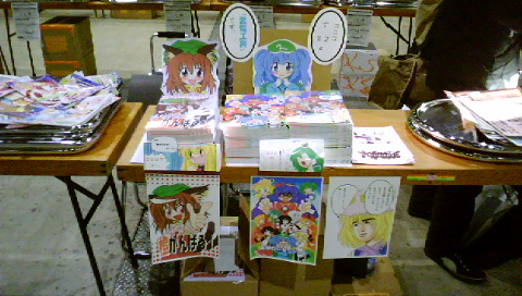 何故かと言いますと、我が心の名作ゲーム「ファントムブレイブ」が移植されます!! (続編でないのが、少し残念・・・追加要素に期待☆) 偶然知ったのですが、知った時は小躍りしそうになりました。 これで、買ってから押入れに入れっぱなしだったWiiを起動する事ができます!! まだプレイした事の無かった、坊ちゃん!お嬢ちゃん!お兄さん!お姉さま! やらないか? そして、「ファントムブレイブ」の吉報を知る要因となった出来事があります。 それは・・・ 「ひだまりスケッチ」のゲーム予約です! 一期の頃から密かに願っていたので、嬉しい限りです。 発売日は2月12日 これまた楽しみです♪ しかし、不安もあります。 最近の私はあまり長時間・長期にわたってゲームをしなくなっているのです。 だいたい三日坊主です。 「ライドウ」「リトバス」も放置ぎみ・・・ 最近買った「マクロス」も、そろそろ・・・ まあ、ゲームをしない原因が「絵を描く事」ですから 悪くはないのですけどね。 言ってしまえば、ゲームは娯楽ですから 息抜きに出来ればいいのですから。 買ってもやらないゲームが増えているので、もう本当に欲しいゲーム以外は買わない! と、今年の抱負を立てた所で、上記の2作品が発売されるのですから・・・ さてさて、今年の私のゲームライフはどうなる事やら・・・ あらためて、 冬コミで私のサークルに来てくれて ありがとうございます。 まず、報告から 『ホワイトキャンバス』で新刊「風神センセーション」が委託販売されています。 イベントで買い逃したり?冬コミに参加できなかった人でもお買い求めできます。 よろしくお願いします。 今回はサークルスペースの様子をカメラに収めました。 周りでは結構ポスターを立てていたので、いつか私もポスターでデッカク宣伝アピールしてみたいと思いました。 今は小物でチョコチョコとスペースを彩っています。 今回は思い切って3ケタ部数本を作ったのですが、スペースに搬入されていたダンボールを見て 少しビビリましたね。 でも、机に ドンッ! と積み上げられた様子は、眺めていて良かったです。 内心「大量に売れ残ったら、どうしよう・・・」と不安になっていましたが。 しかし、お陰さまで、用意した3分の2は売れたので良かったです。 感謝☆ で、残った新刊の本を委託に回したので、手元には在庫は無いのです。 委託分が売り切れれば、完売ですので 買って頂けるとありがたいです。 冬コミの後から、ゆっくりと体調を崩してしまい 新年早々、風邪をひいて寝込んでしまったりと・・・ ちょっと出遅れましたが、とりあえず次ぎは2月頭のサンシャインクリエイションです!! 新刊・・・・・・ 出ます!?(たぶん) ネタはあるのですが、時間が厳しいですね。 何とかできるよう、頑張りたいです。 そう言えば、順調に行けば、今年はほぼ毎月〆切があるんですよね。 ソレもこれも、全部の参加イベントで新刊を出そうとしているからなんですが・・・ 友人曰く、複数人のサークルなら兎も角、個人サークルでこんなスケジュール組む奴は居ない! トカ言われました・・・ まあ、ネタがあるから本を出したいんですけどね。 流石に自分でも無茶だとは思っているので、次の次より先は少し未定なのです。 順次報告したいと思います。 それでは、新年あけましておめでとうございます。 今年もよろしくお願いします。